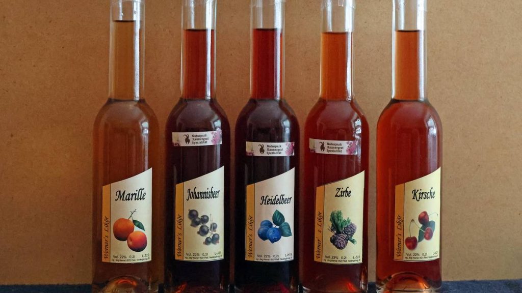 Neben klassischen Likören von Kirsche, Marille, Johannis- und Heidelbeere mit Ihrem fruchtigen Aroma, hat es mir vor allem der Zirbenlikör aus heimischen Zirbenzapfen angetan. Eine ausgesprochen anspruchsvolle Arbeit von der Ernte bis zum leicht nach Harz schmeckenden Endprodukt. Vor allem die Balance zwischen Süße und Harz sind der Schlüssel zum perfekten Genuss.
