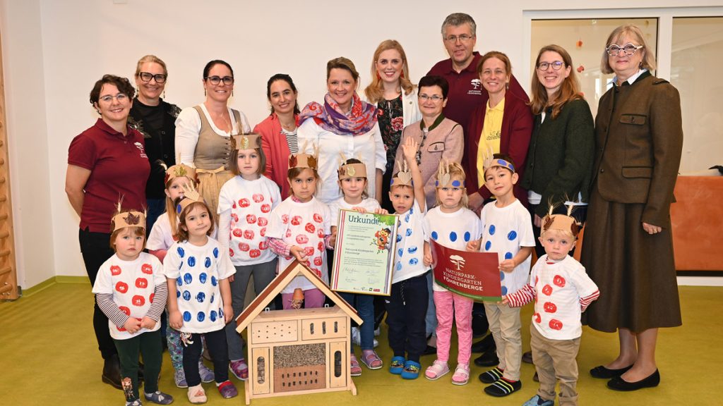 Gumpoldskirchen als Naturpark Gemeinde ist ein wahrer Vorreiter, was die Naturpark Bildungseinrichtungen betrifft. So wurde heuer im Juni die VS Gumpoldskirchen zur allerersten Naturpark Schule des Naturpark Föhrenberge ernannt. Die Idee wurde durch die Leiterin des Kindergartens Bahngasse, Ingrid Hammer, gemeinsam mit dem Landschaftspflegeverein als Kooperationspartner im Bereich Bildung des Naturpark Föhrenberge weiterverfolgt. Die feierliche Prädikatisierungsveranstaltung des Kindergartens Gumpoldskirchen fand unter Beisein einiger Ehrengäste statt: Martin Schuster, Obmann des Naturparks Föhrenberge, Mathilde Stallegger, Vorstandsmitglied Verein Naturparke Niederösterreich und Präsidiumsmitglied Verband Naturparke Österreich, Abgeordnete zum NÖ Landtag Marlene Zeidler-Beck in Vertretung von LHFrau Johanna Mikl-Leitner sowie Landesrat Susanne Rosenkranz freuten sich, den neuen Naturpark Kindergarten willkommen zu heißen. Naturbildung wird nun in Gumpoldskirchen schon ab dem Kindergartenalter besonders groß geschrieben.